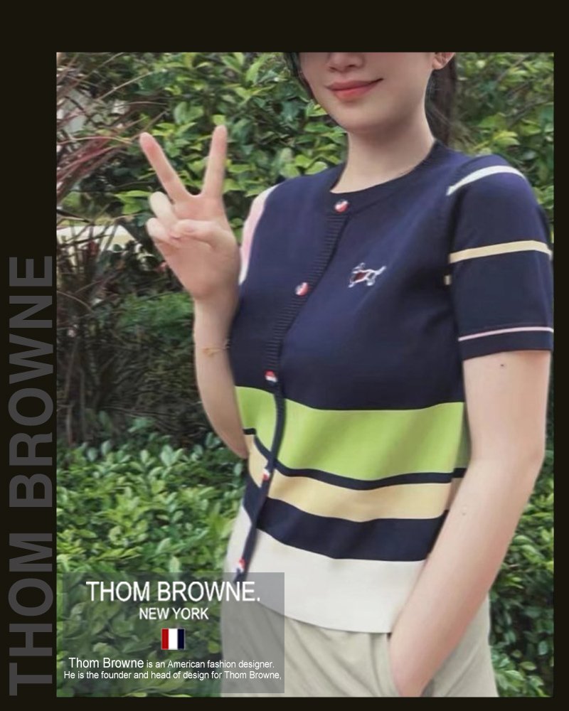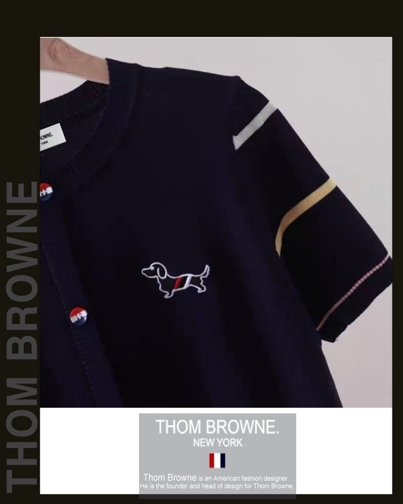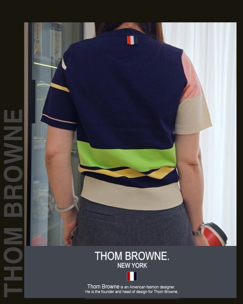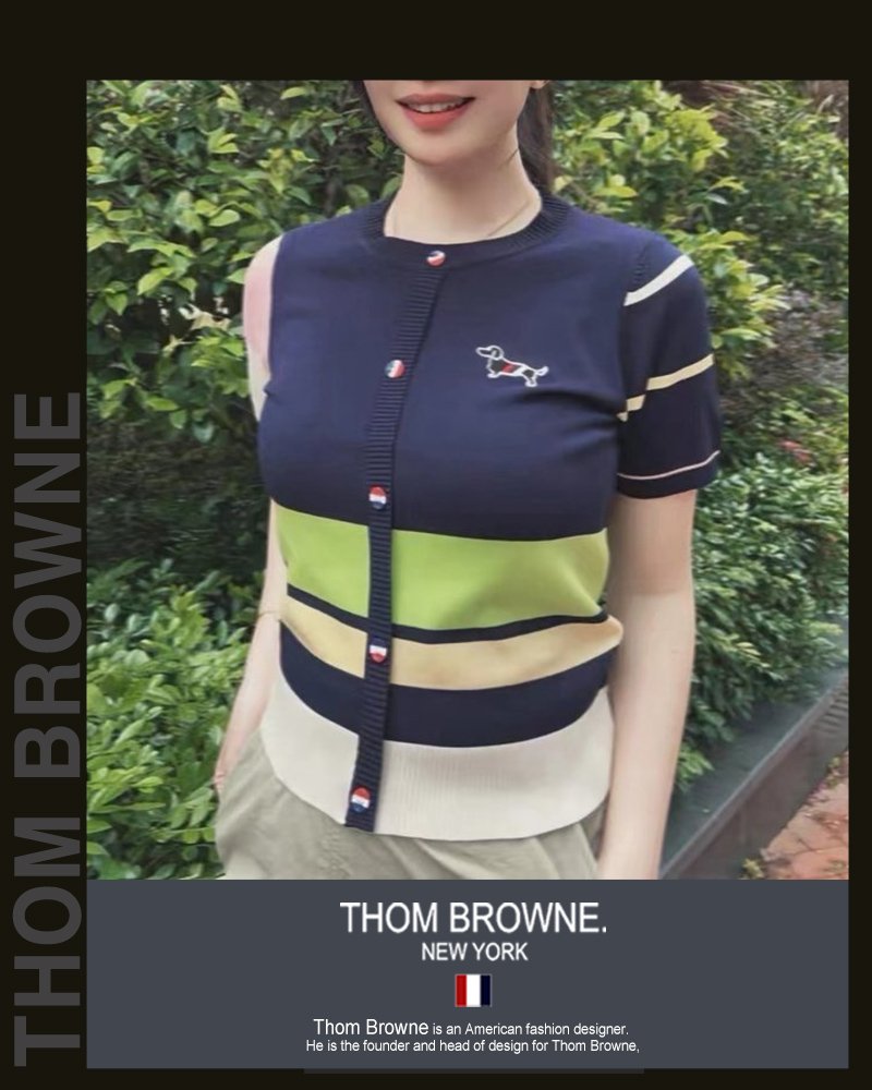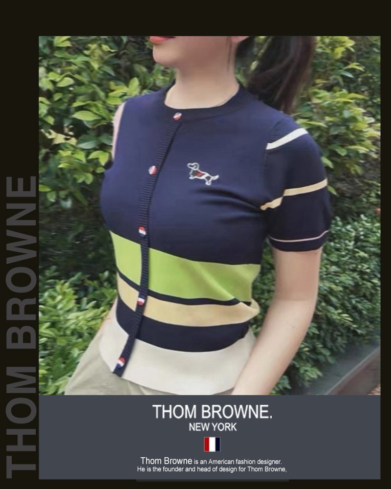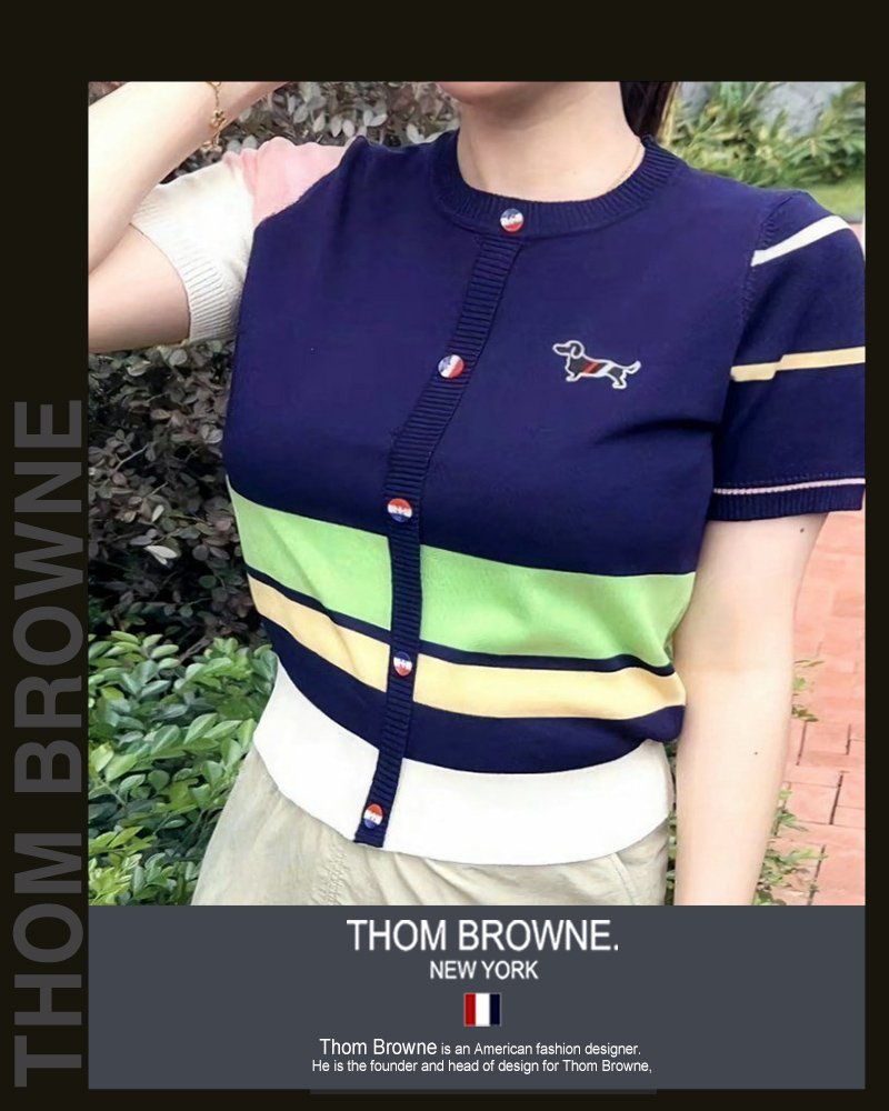 톰브라운 여성 537 헥터 멀티 칼라 배색 반팔 니트 가디건