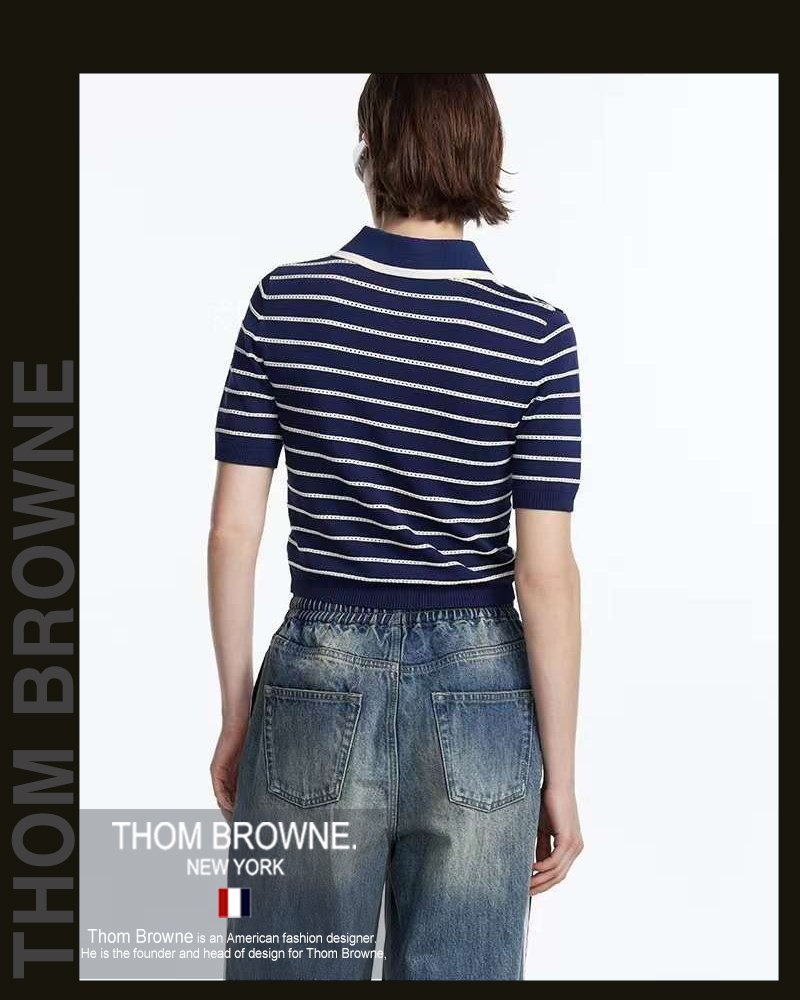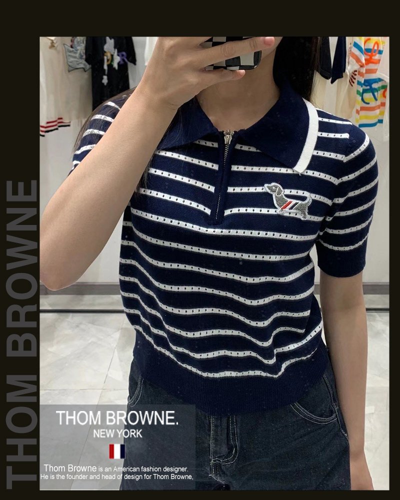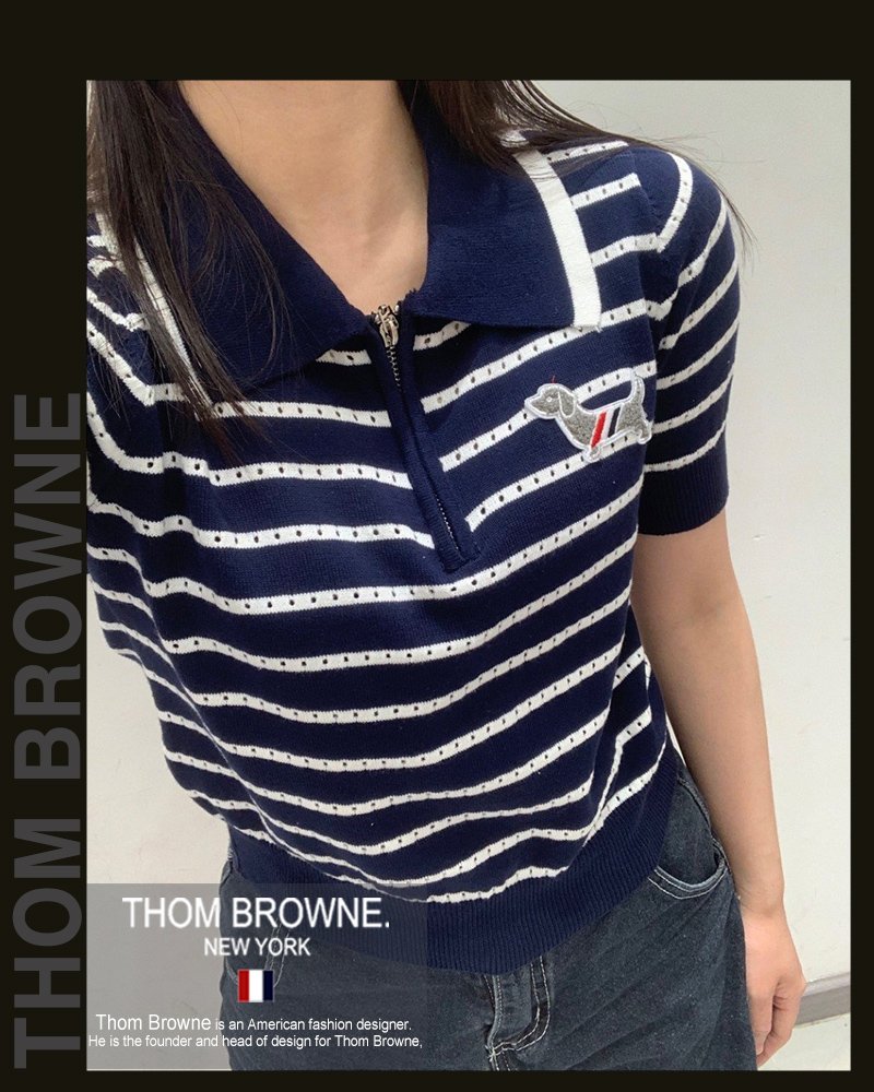 톰브라운 여성 8986 헥터 카라 반집업 ST 반팔 니트