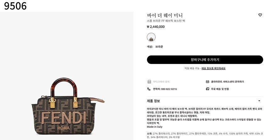 #펜디 [FENDI] 수입고급 바이 더 웨이 미니 보스턴 백 신상입고💢 #가방 #9506 ㆍ✍구성품 ㅡ본품. 스트랩. 더스트. 브랜드박스ㆍ😍컬러 ㅡ 브라운ㆍ😎사이즈 ㅡ 20cm X 13cm X 8cm (미세오차허용)17.5