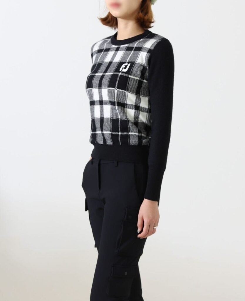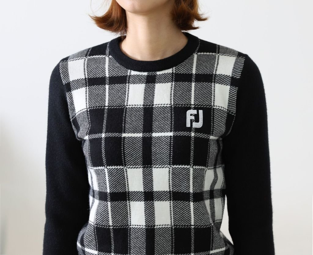 풋조이 여성 FJ 체크 사각 방풍 니트 색상: 화이트, 그린, 옐로우사이즈: 55, 66, 77※여성용※모델 착용컷: 169cm / 50kgㅡ 55착용※안감: 방풍 소재 / 겉감- 니트 원단8.3