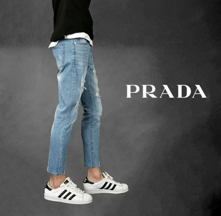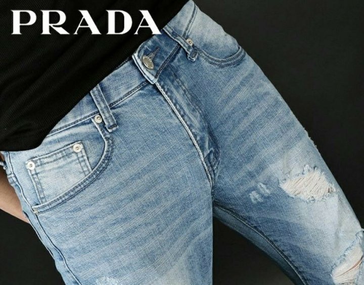 프라다 다트 디스트로이드 워싱진 청바지