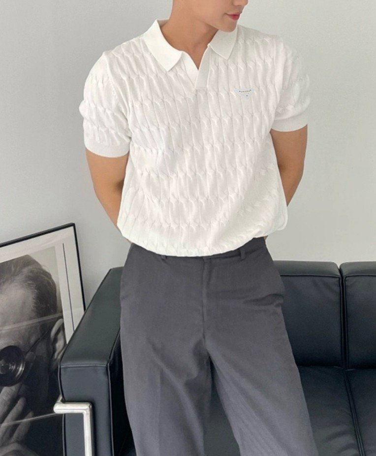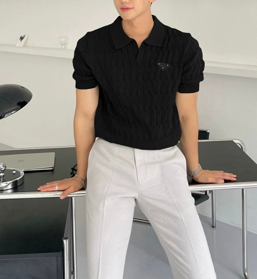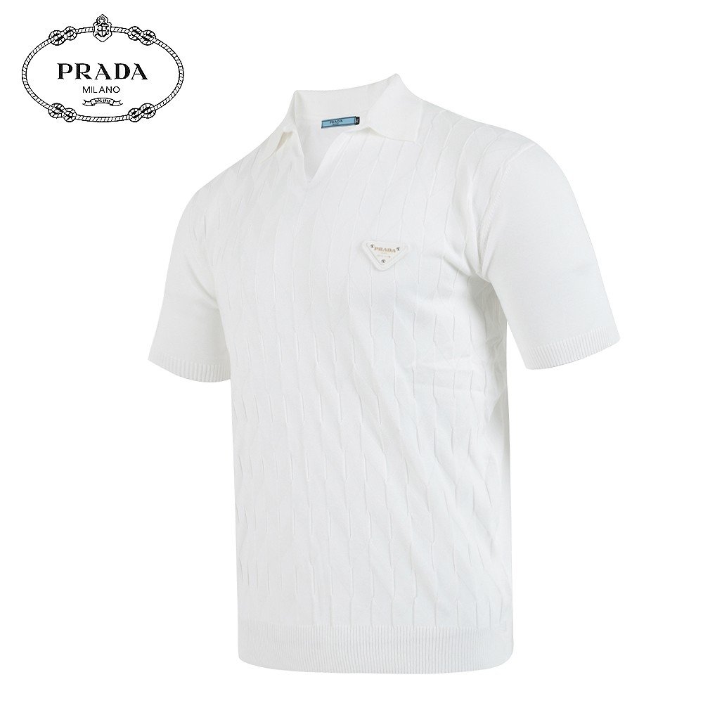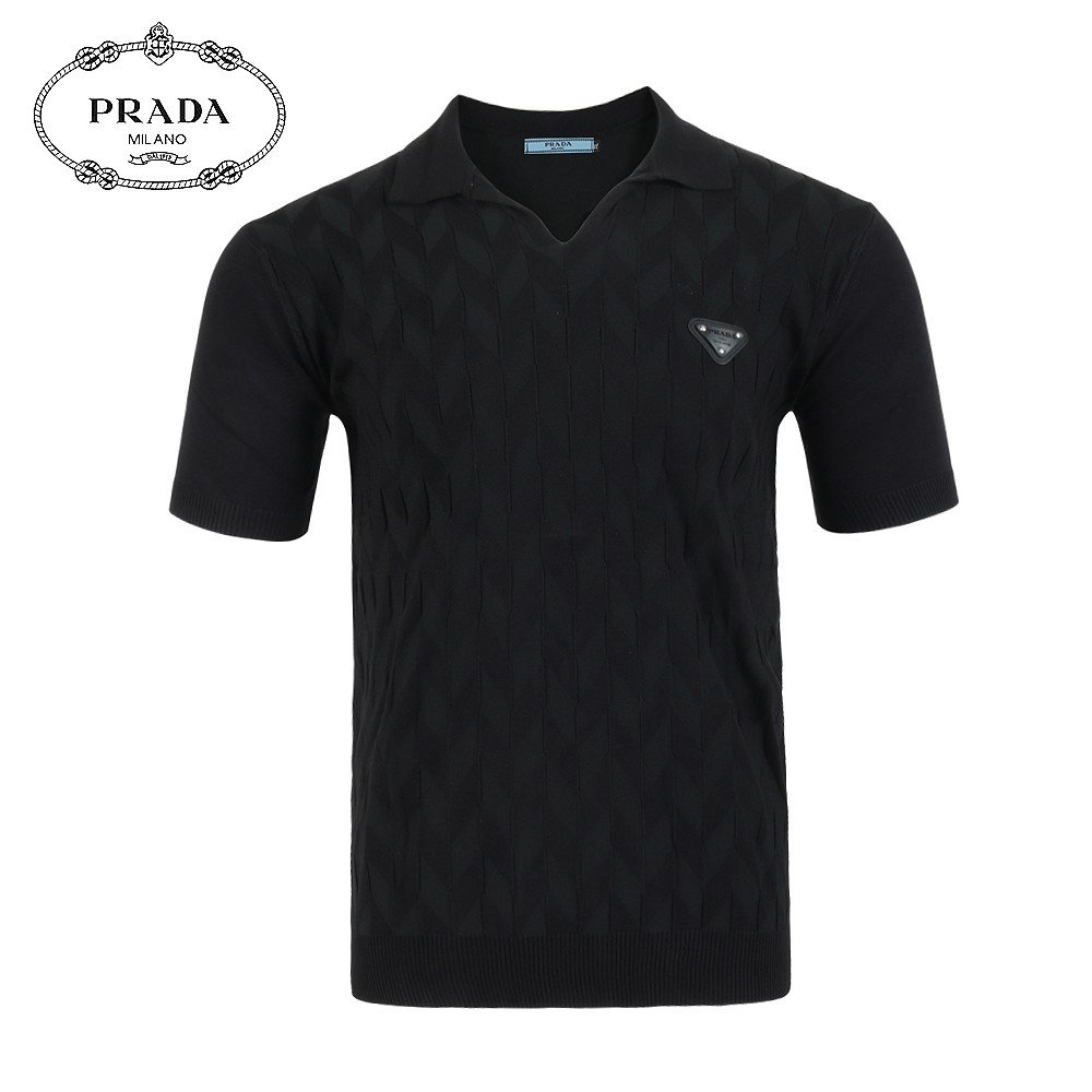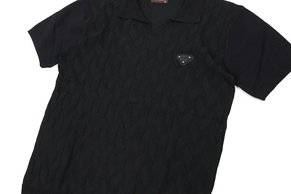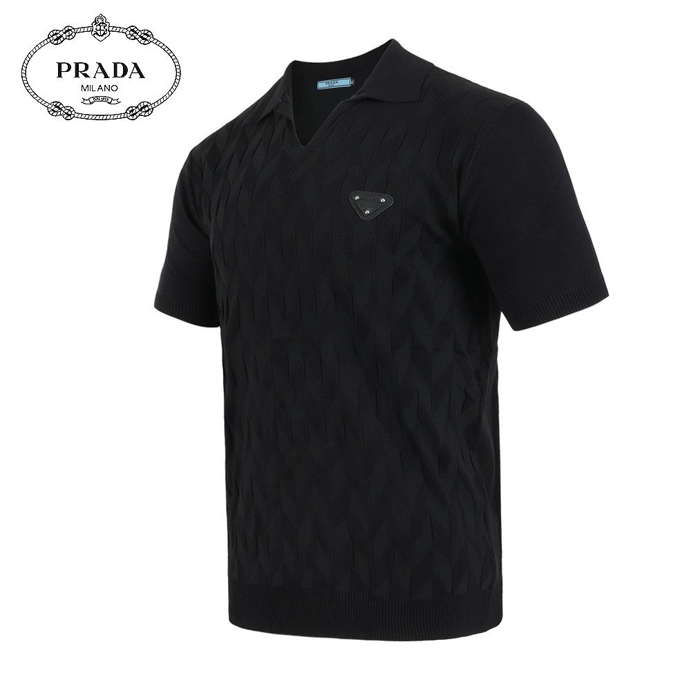 프라다 레더 트라이앵글 오픈 카라 니트