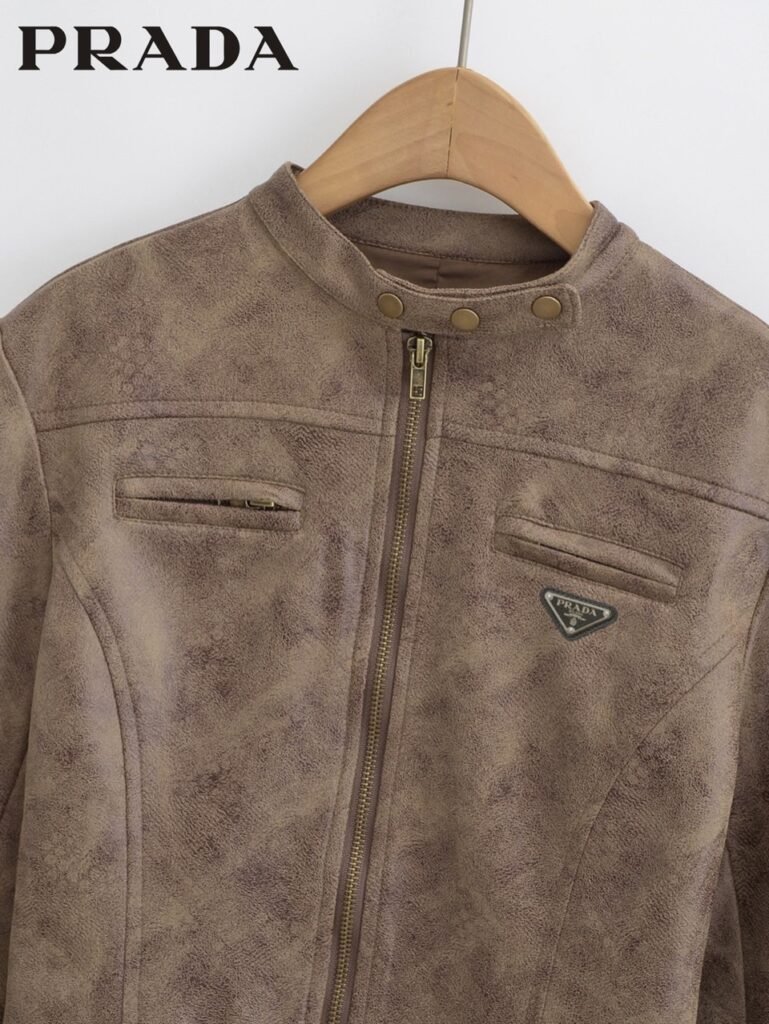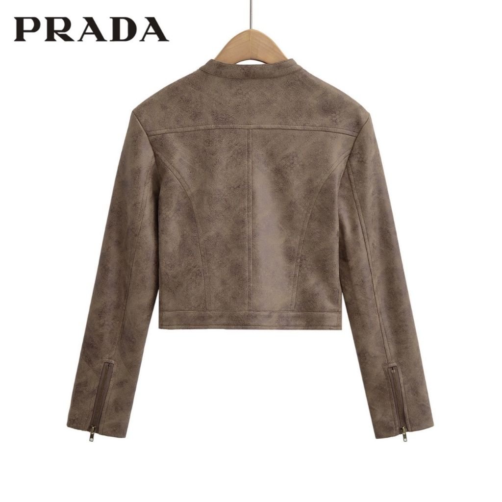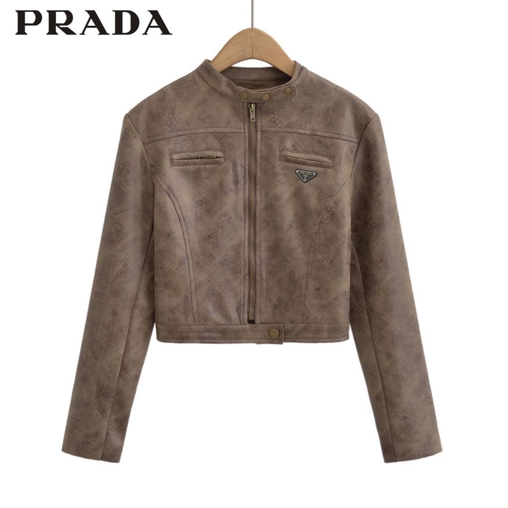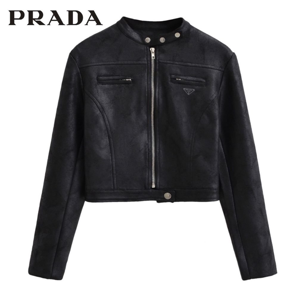 프라다 여성 쓰리탭 크롭 스웨이드 자켓