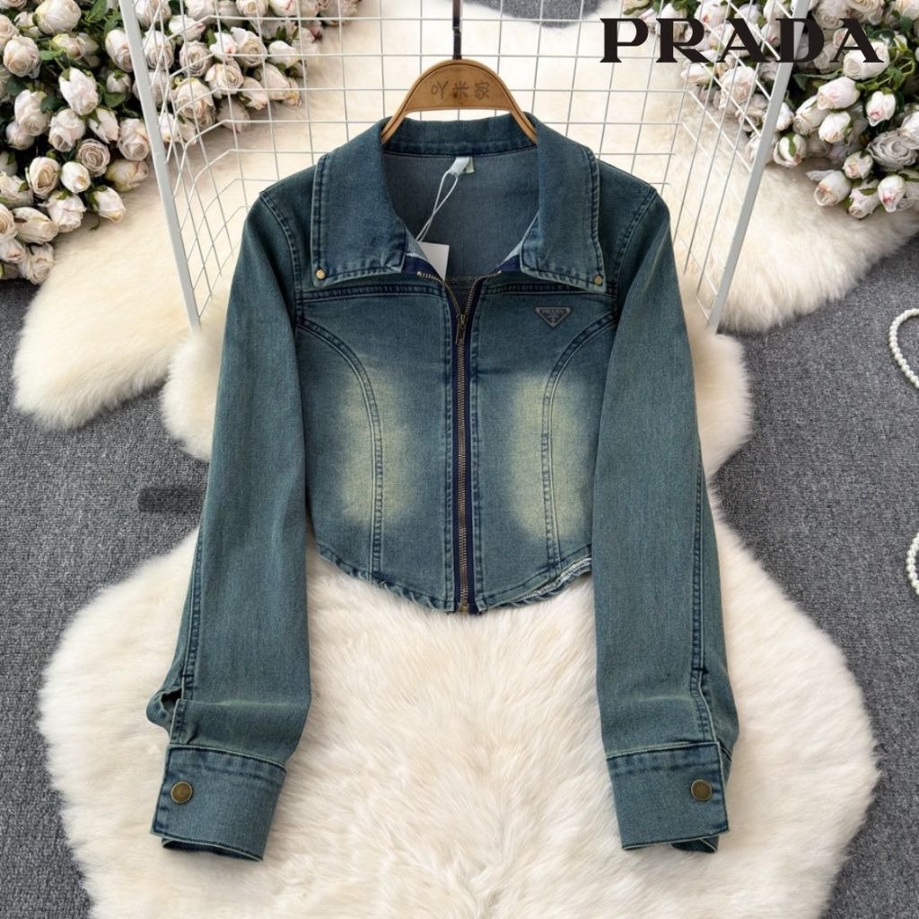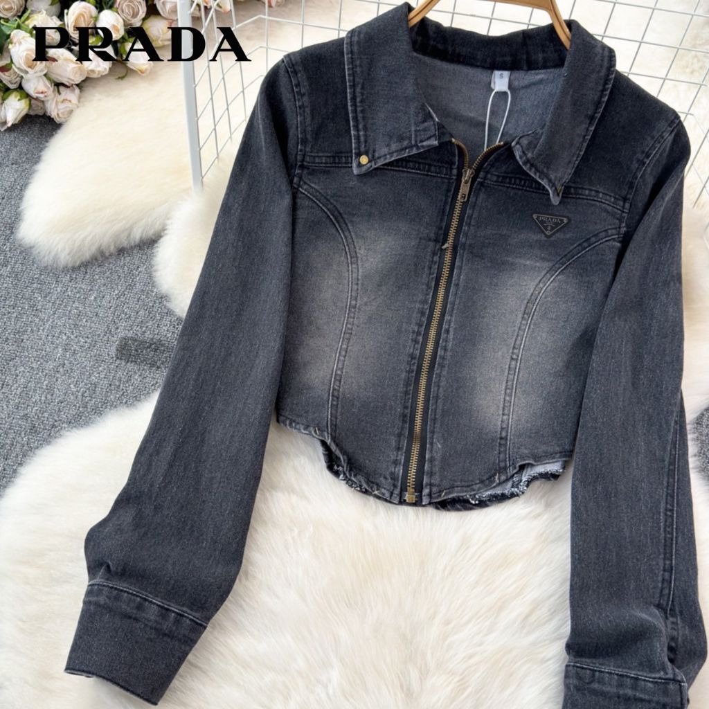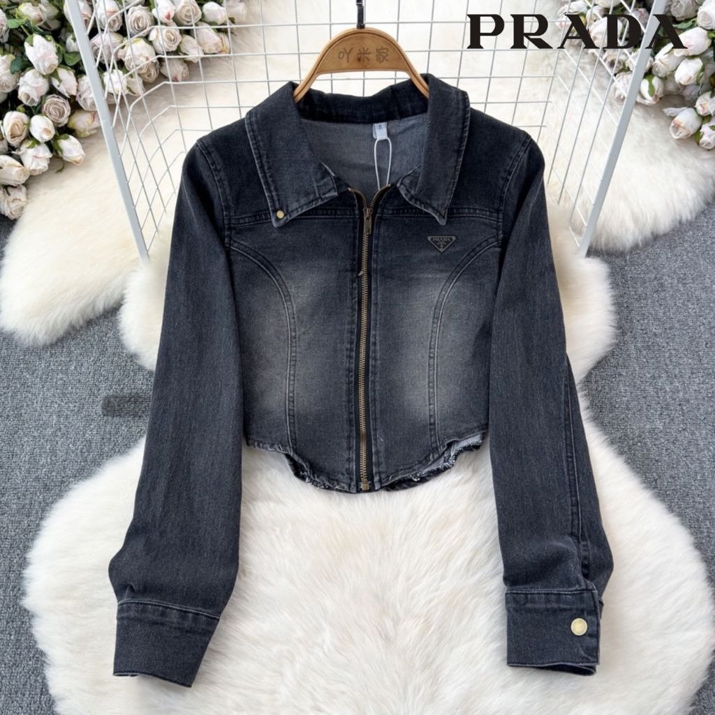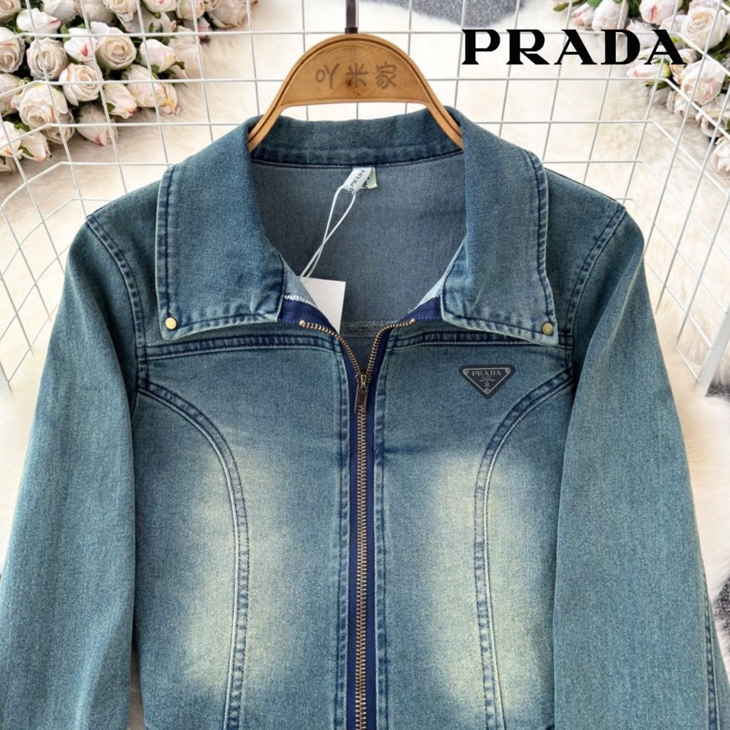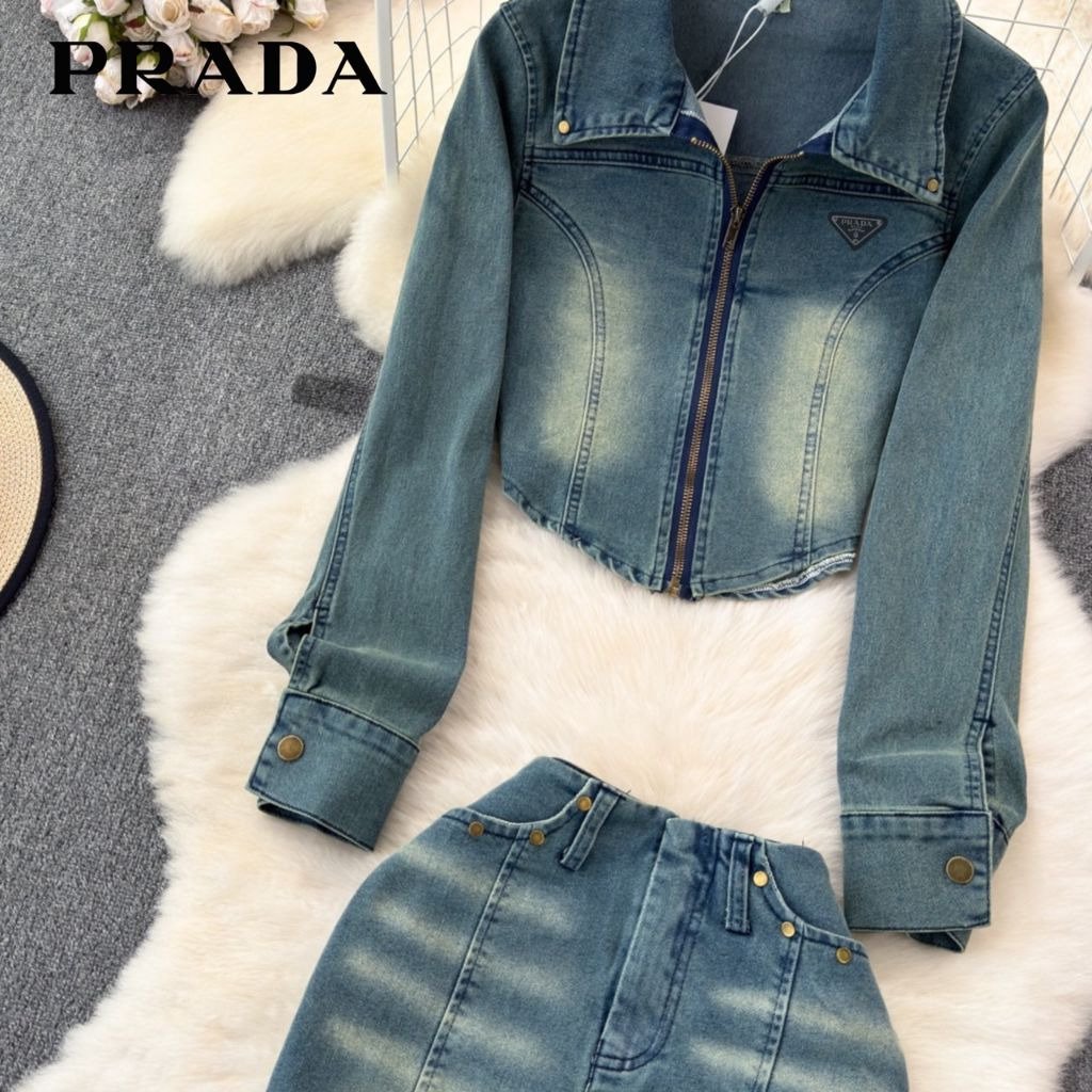 프라다 여성 플레이트 워싱 청자켓 스커트 세트