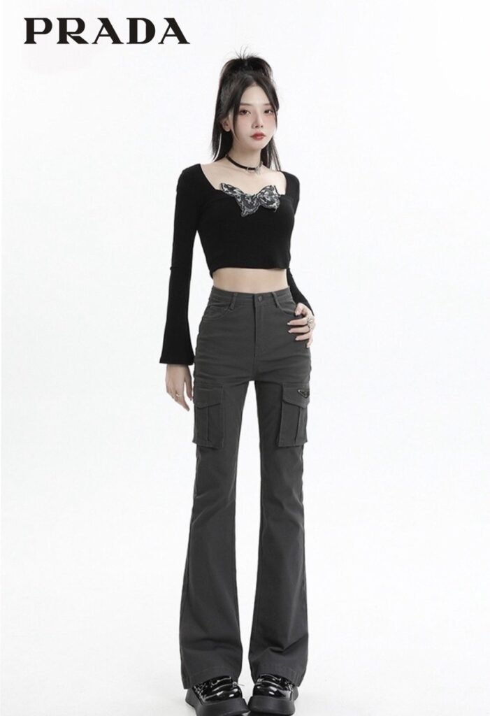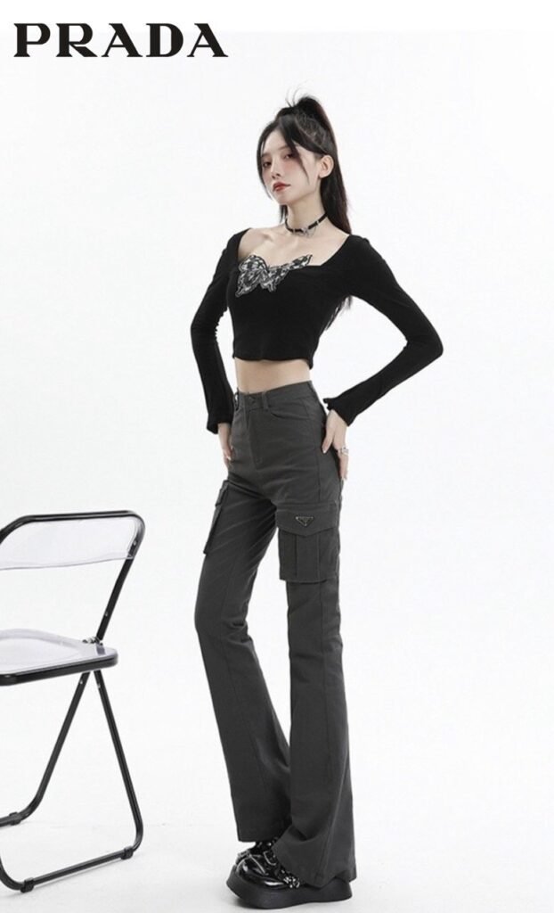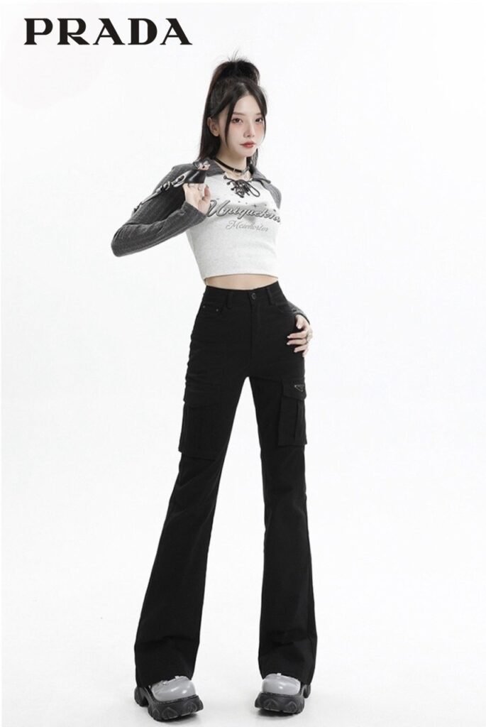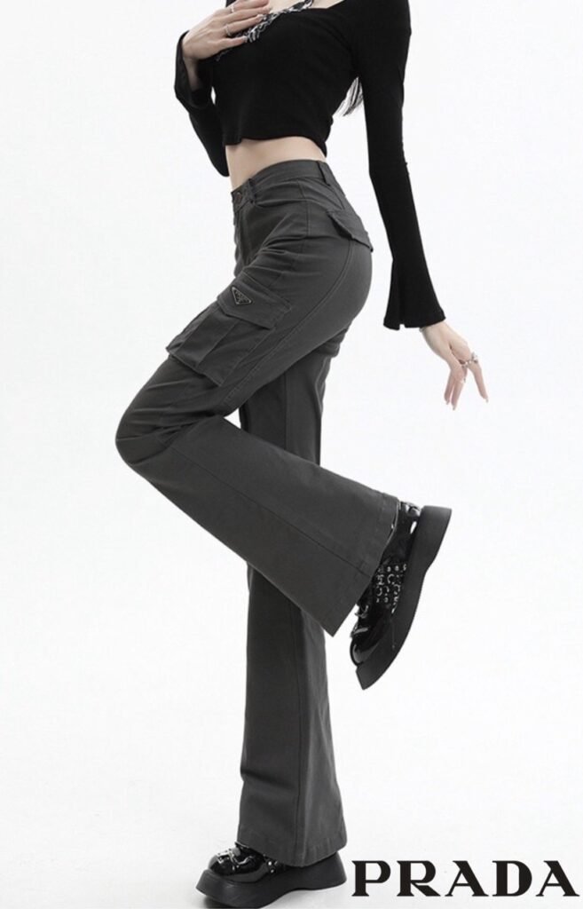 프라다 여성 플레이트 카고 부츠컷 팬츠 (바지)
