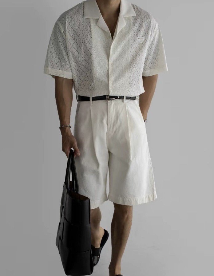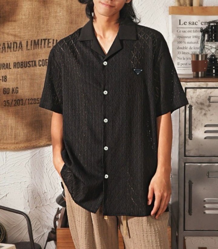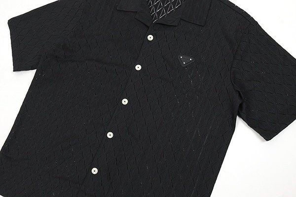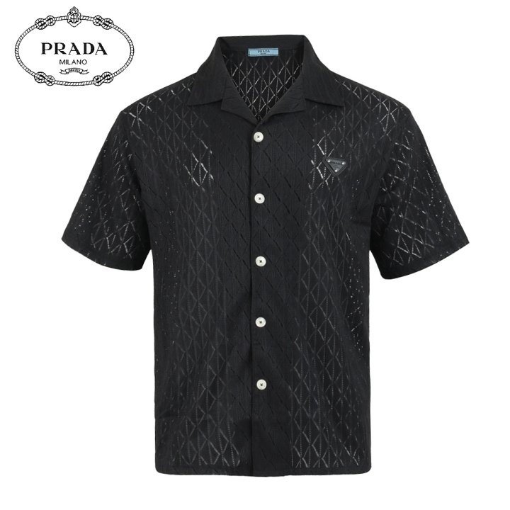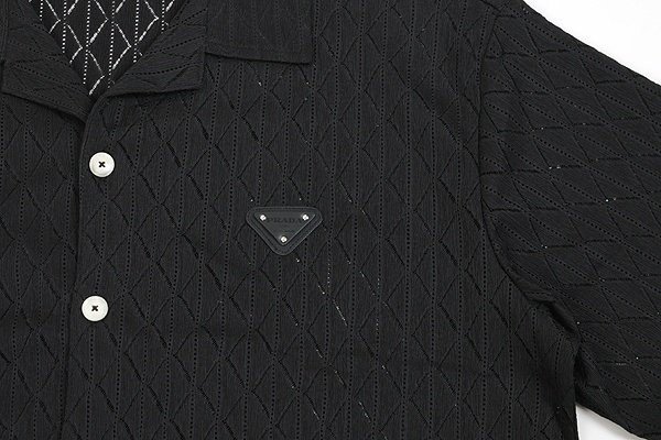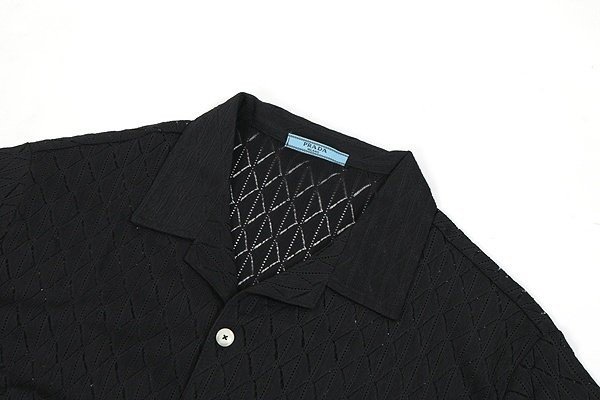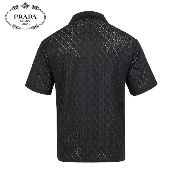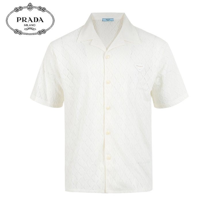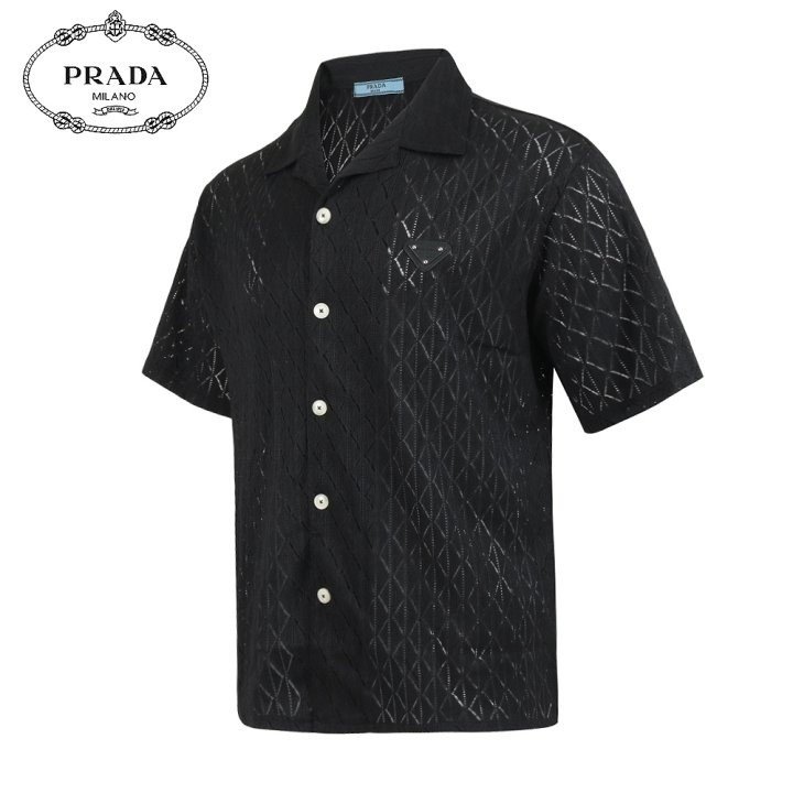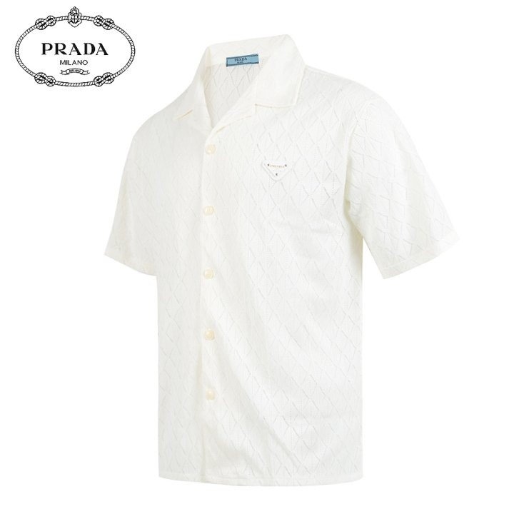프라다 클래식 레더 자카드 반팔 셔츠