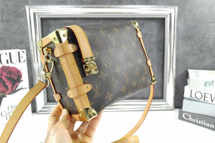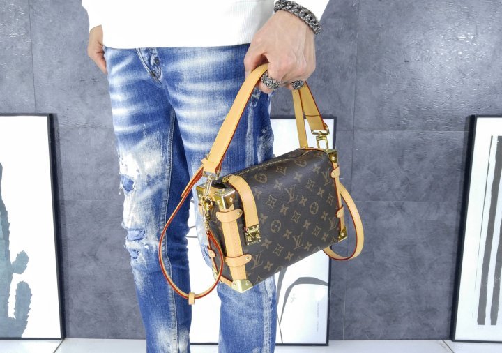 니콜라 제스키에르가 하우스의 트렁크 제작 헤리티지를 담아 선보이는 사이드 트렁크 MM 핸드백. 모노그램 캔버스 소재와 가죽 소재의 트리밍이 조화를 이루는 디자인. 시선을 사로잡는 보강된 금속 모서리 및 상징적인 S락이 구성된 가죽 소재의 지퍼 탭이 특징. 탈착 가능한 넓은 상단 핸들. 가죽 소재의 가느다란 숄더 스트랩.