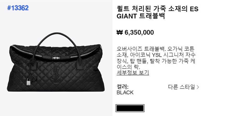 🔆 [SAINT LAURENT] 생로랑 퀄트 ES 자이언트 트래블백 🔆